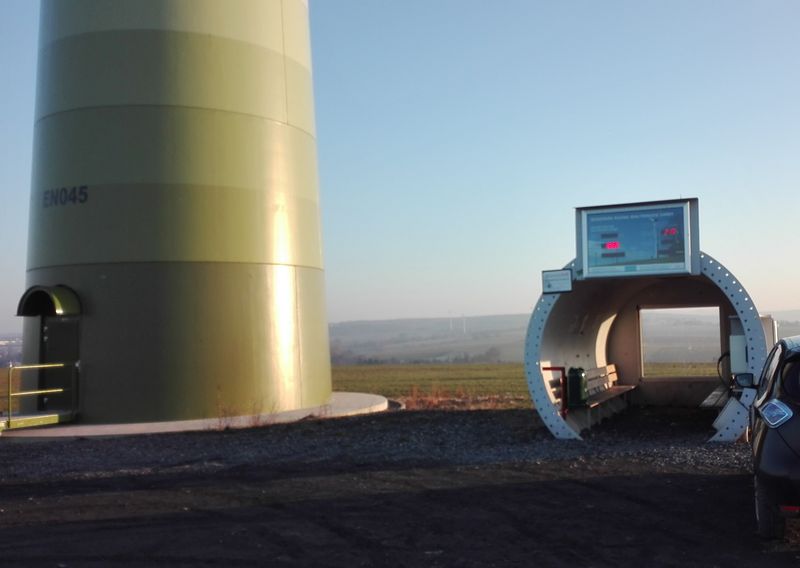 Technikinteressierte können am Fuße einer Anlage umfangreiche Informationen über den Windpark (z.B. Windgeschwindigkeiten, Stromerträge, uvw.) auf einer interaktiven Informationstafel ablesen.